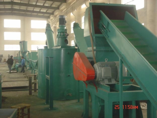 采用蒸汽加熱(鍋爐由用戶自備),結(jié)合機(jī)械力,化學(xué)力和熱力的作用,使廢PET瓶片料所含的雜質(zhì)(指環(huán)境污染物等)與之分離
